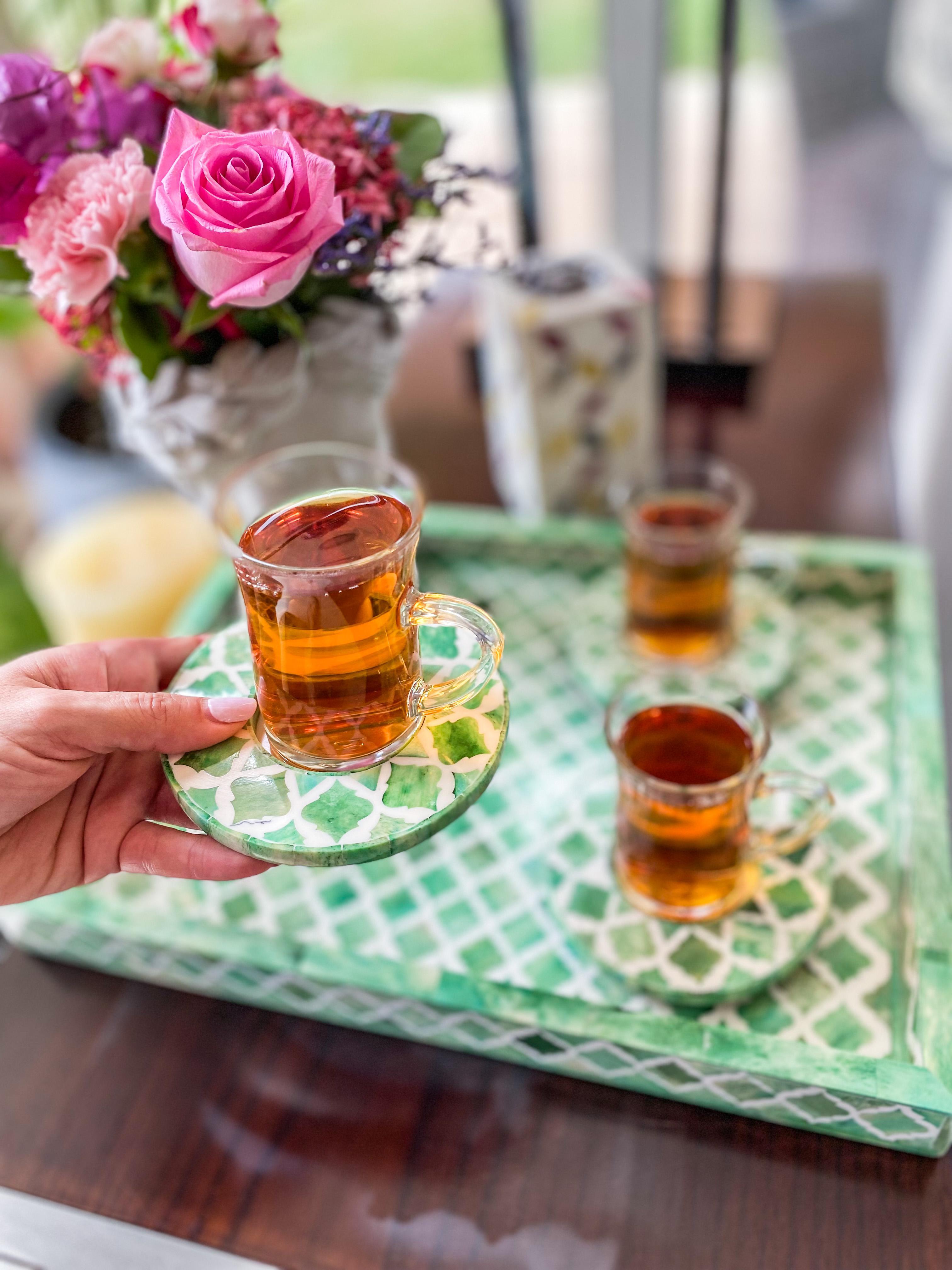 Introducing our newest collection of elegant tea glass sets featuring a striking bone floral design saucers with the tea cups. Available in a variety of vibrant colors, this set of six pieces is guaranteed to make a lasting impression.