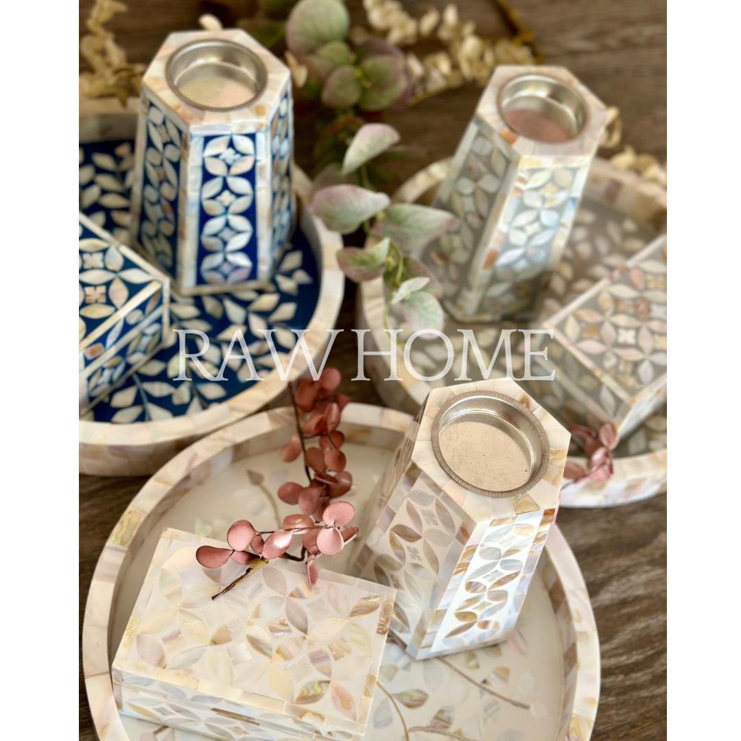 Presenting our famous exquisite three-pieces burner set intricately handcrafted from natural mother of pearl by our talented master artisans, with weeks of meticulous artistry devoted to crafting this stunning design.