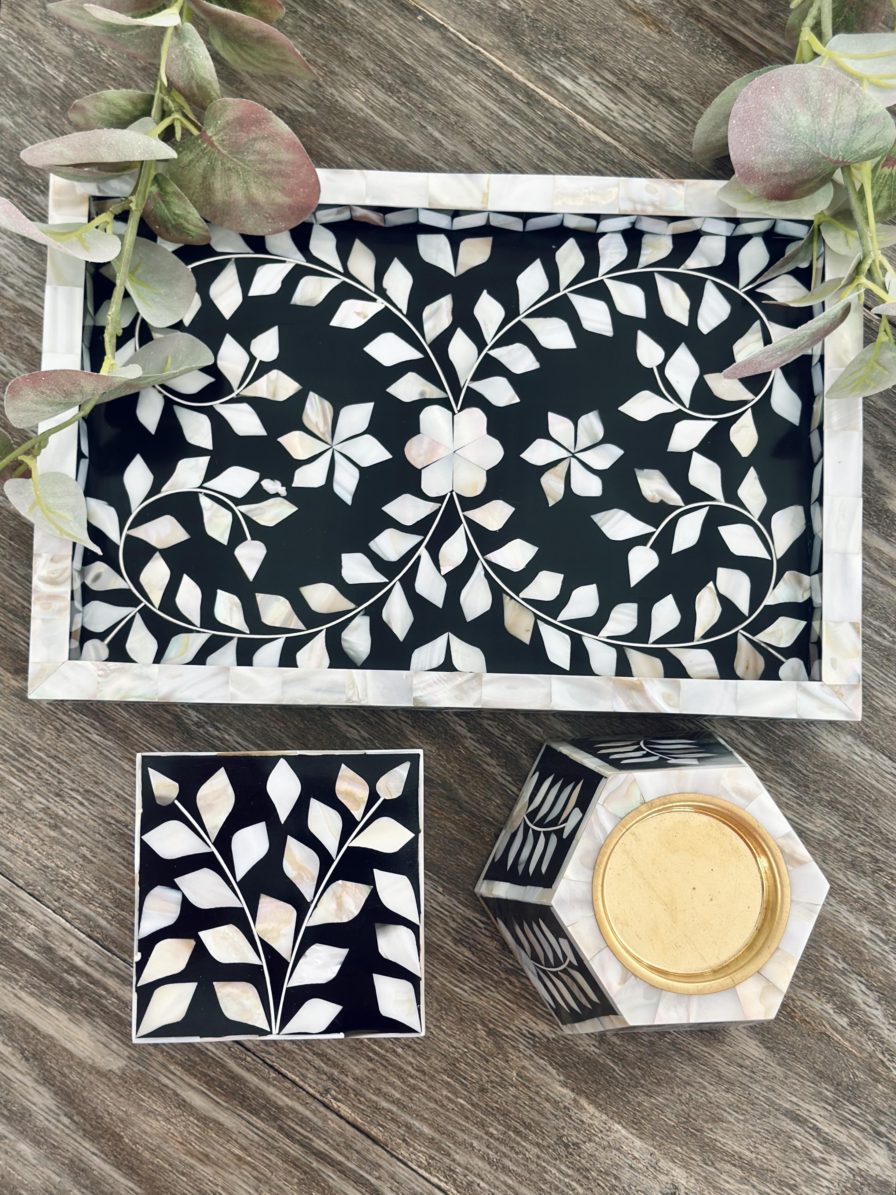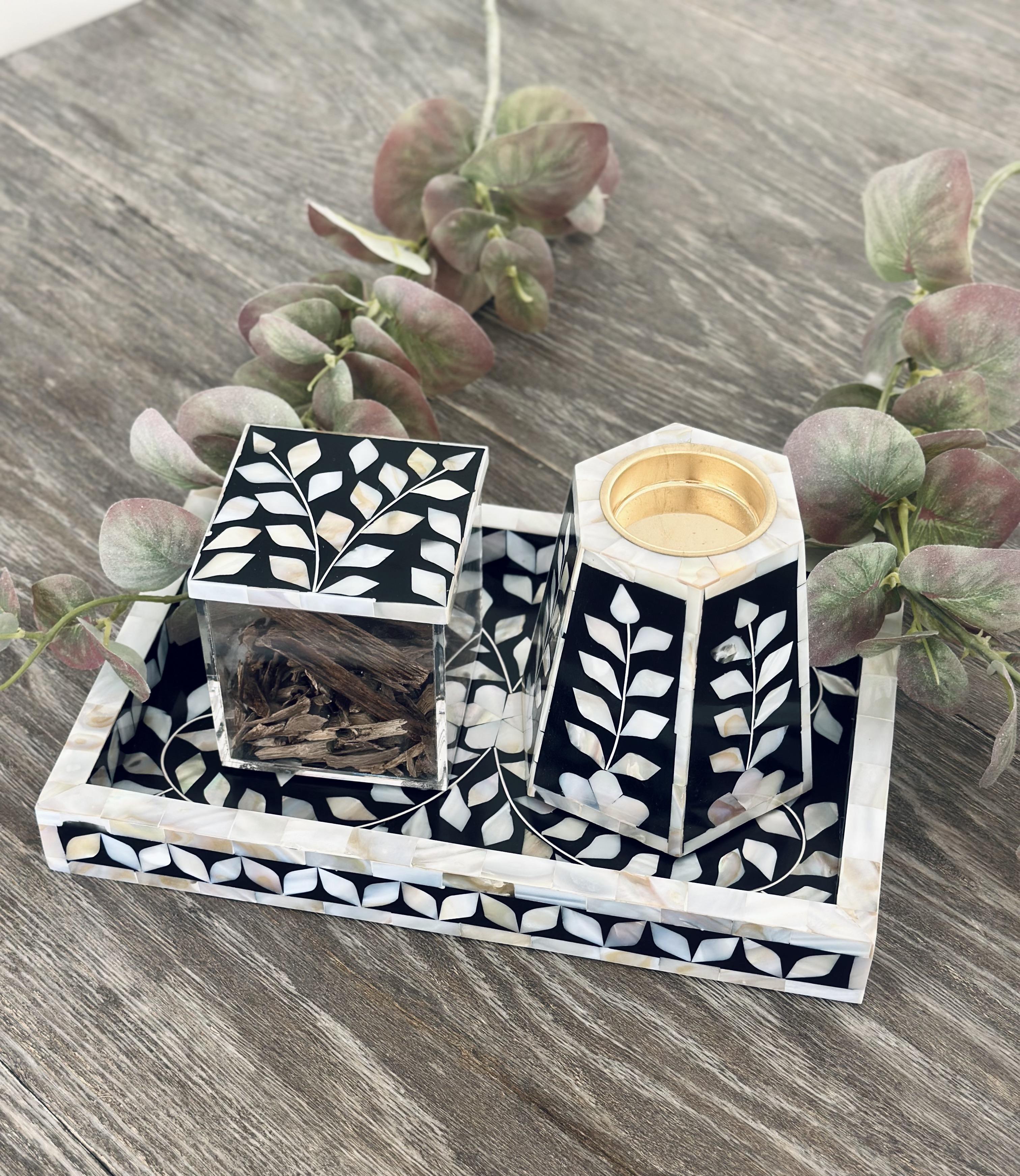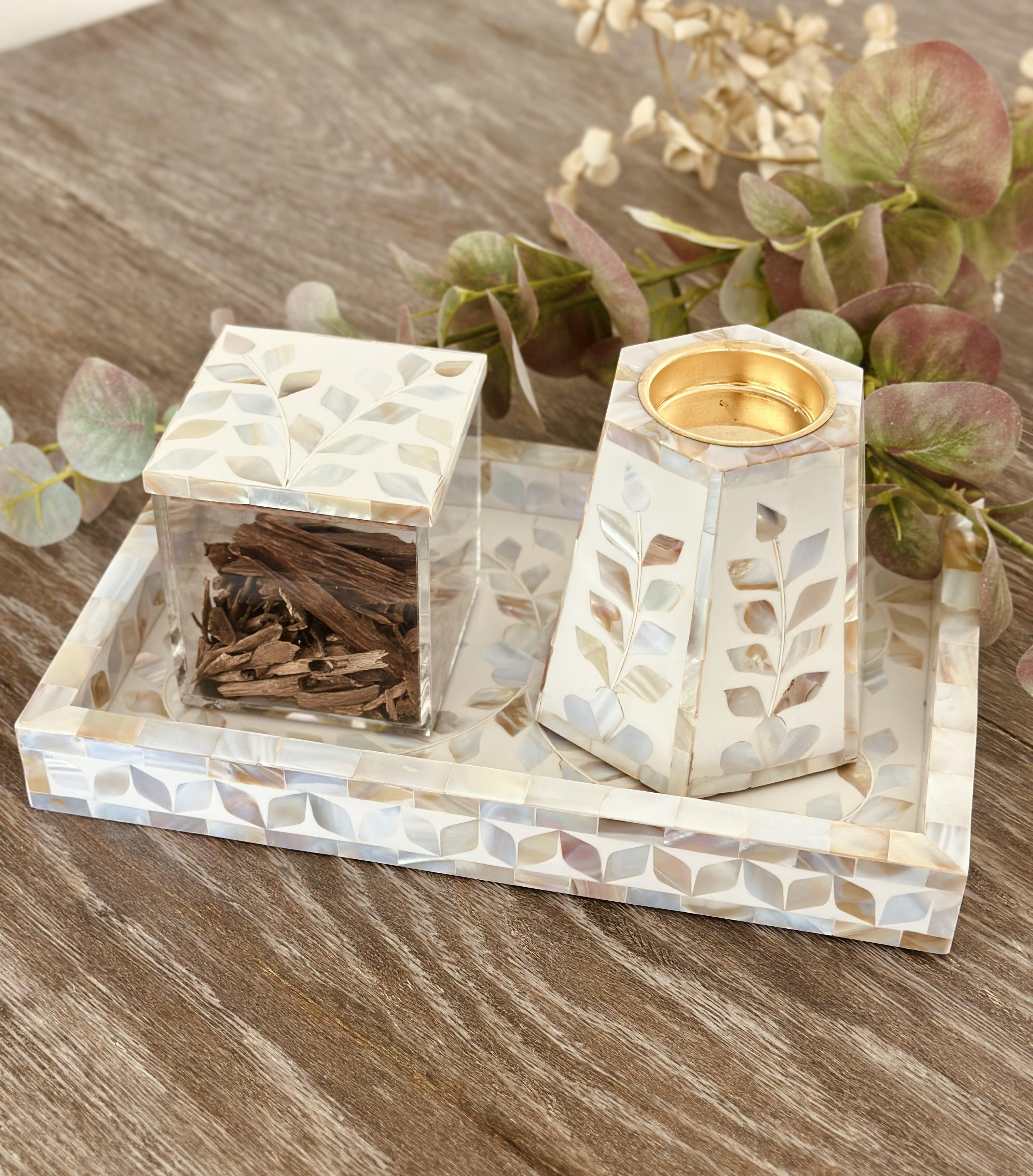 Presenting our classic exquisite three-pieces burner set intricately handcrafted from natural mother of pearl by our talented master artisans, with weeks of meticulous artistry devoted to crafting this stunning design.