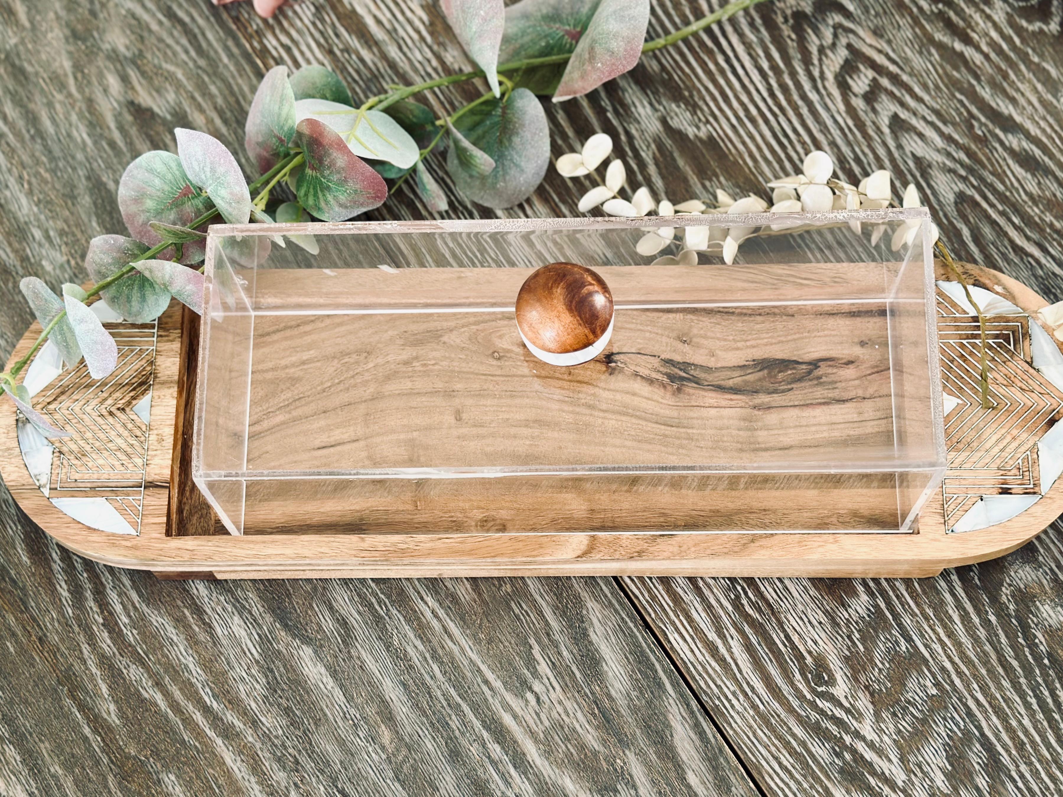 Elevate your hosting experience with ourexquisite multi-task tray, embellished with stunning mother of pearl accents. Completed with an acrylic cover to maintain the freshiness of your food. Perfect for serving both savory and sweet treats. Ideal for intimate gatherings . Guarantees to leave a lasting imprrssion on your guests.