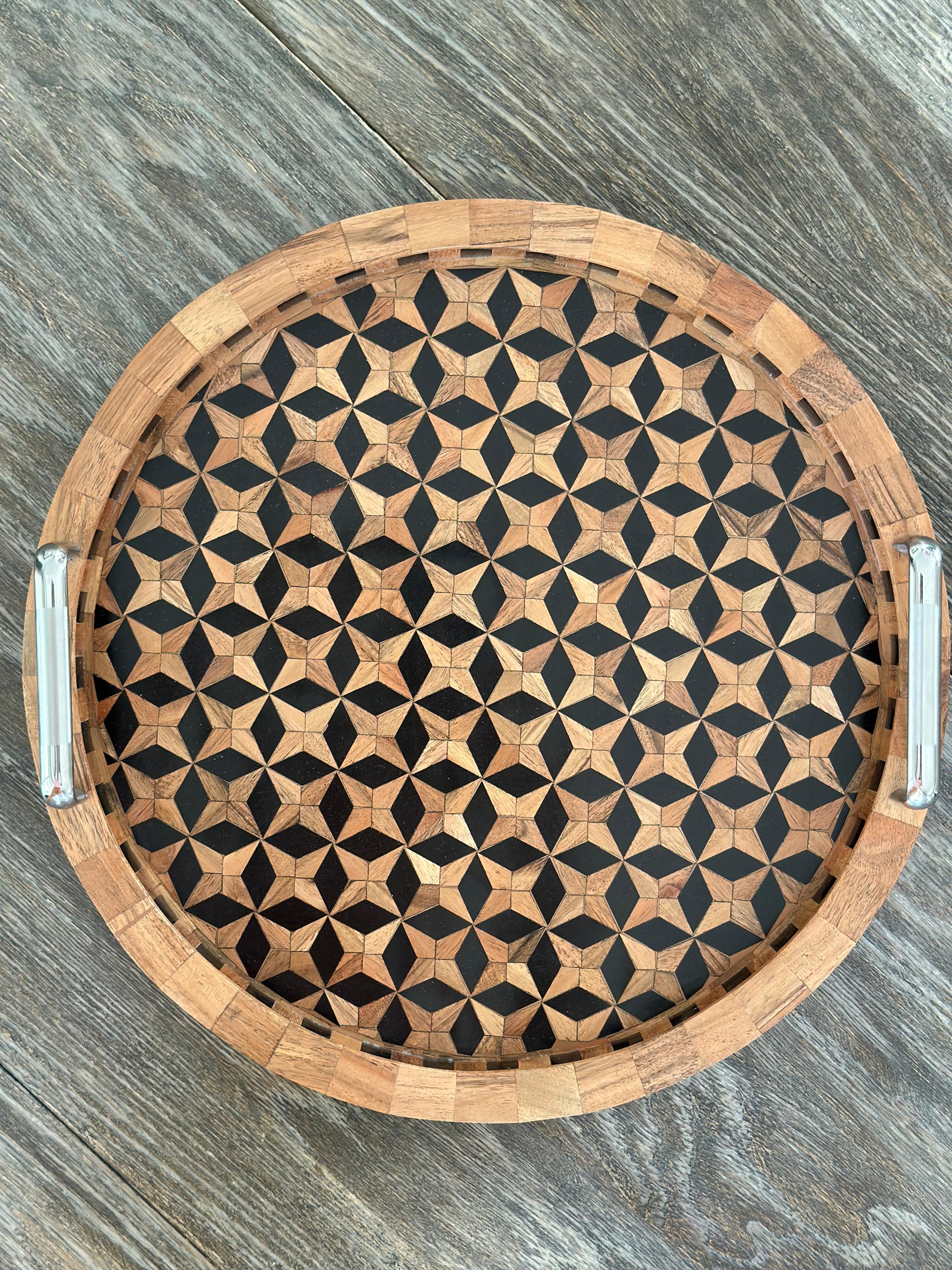 Indulge in our exquisite collection of handcrafted wood inlay style trays, meticulously designed by our skilled artisans to effortlessly elevate any home décor style. Whether used as a serving tray, a decorative accent, or a stunning centerpiece, these versatile and elegant creations are an essential addition to every household.