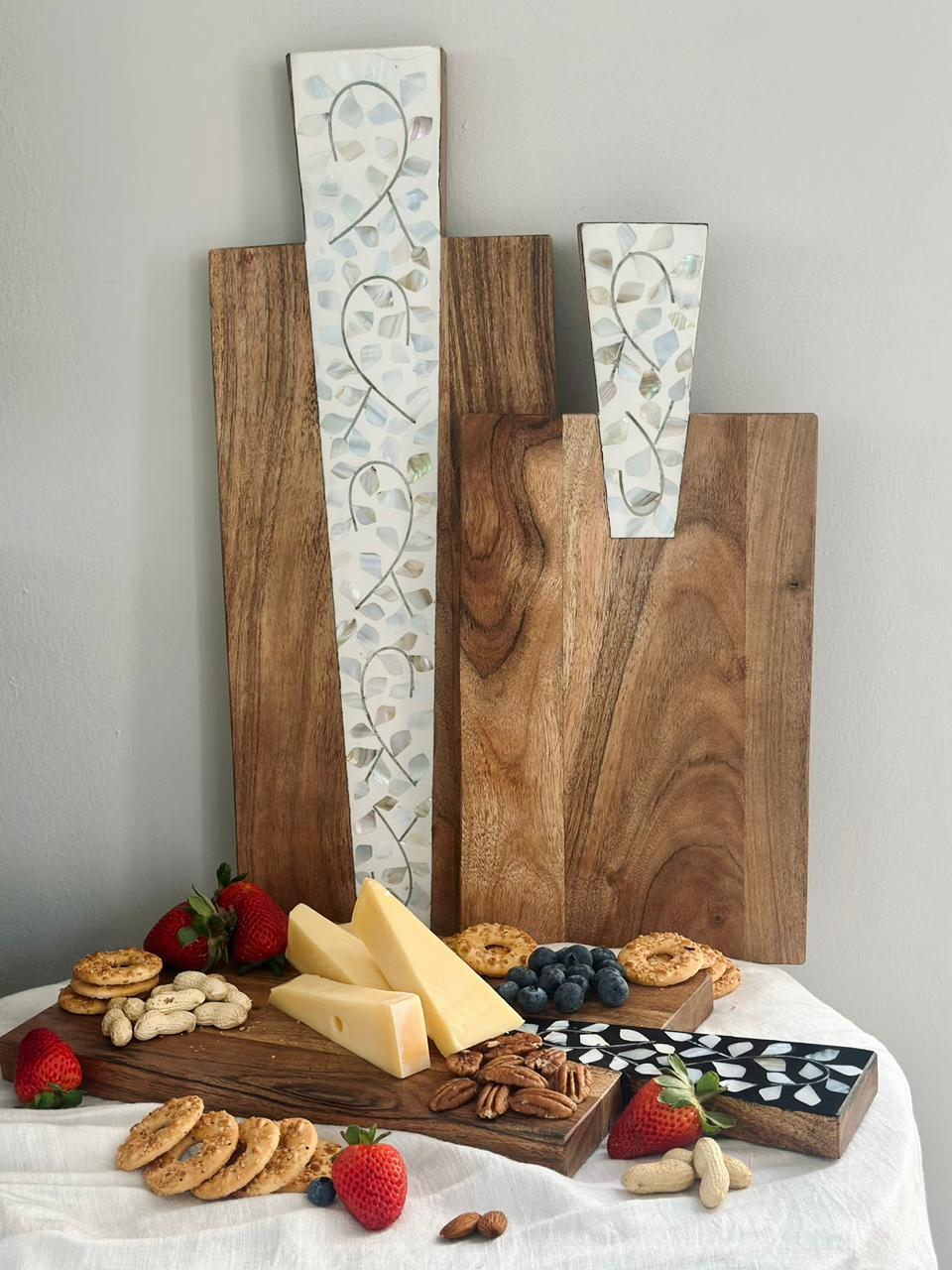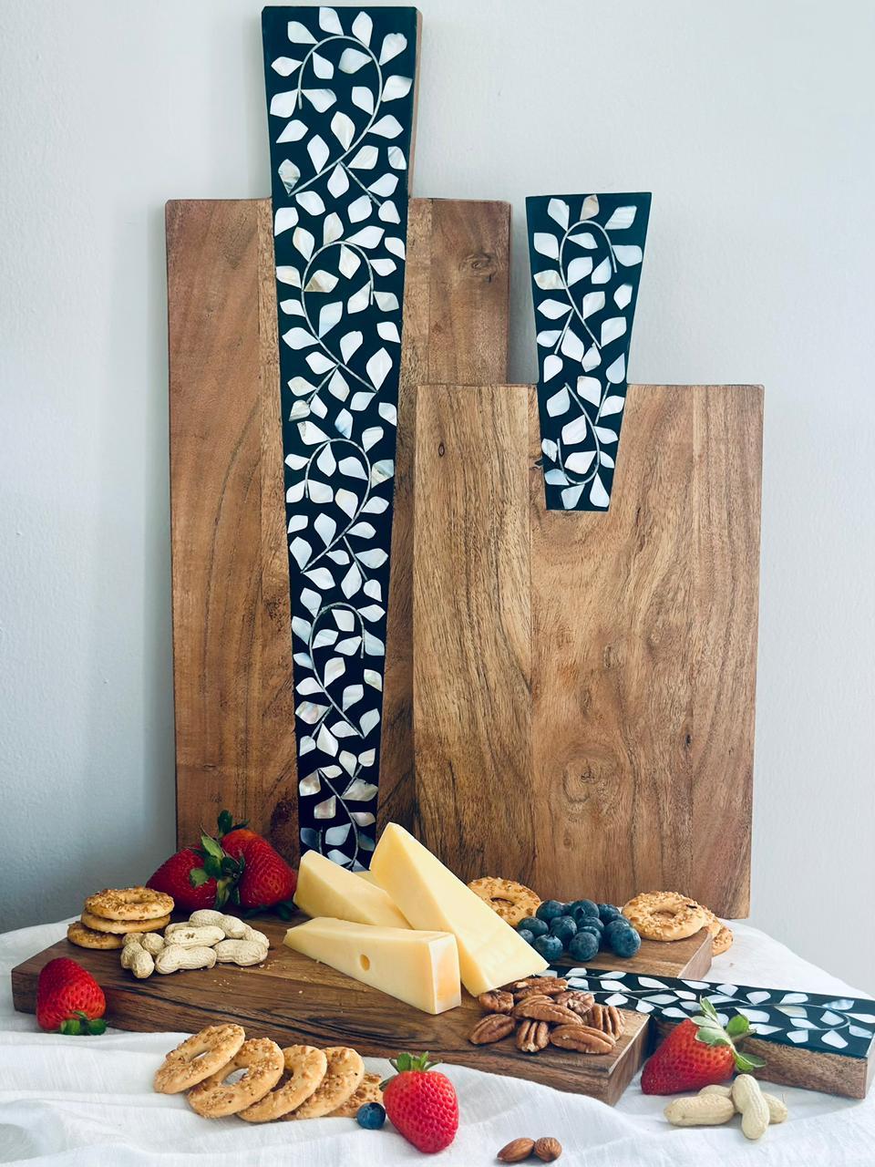 • Material: Solid acacia wood with mother-of-pearl inlay